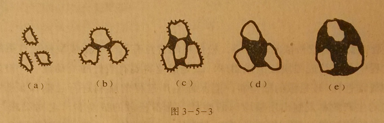 圖3一5-3(e)是整個(gè)團(tuán)粒形成液滴,表面滾圓